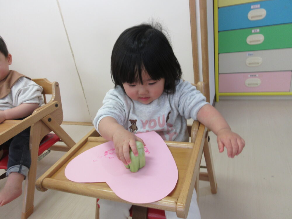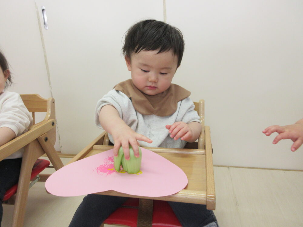 いちご組 青梗菜スタンプ押ししたよ。